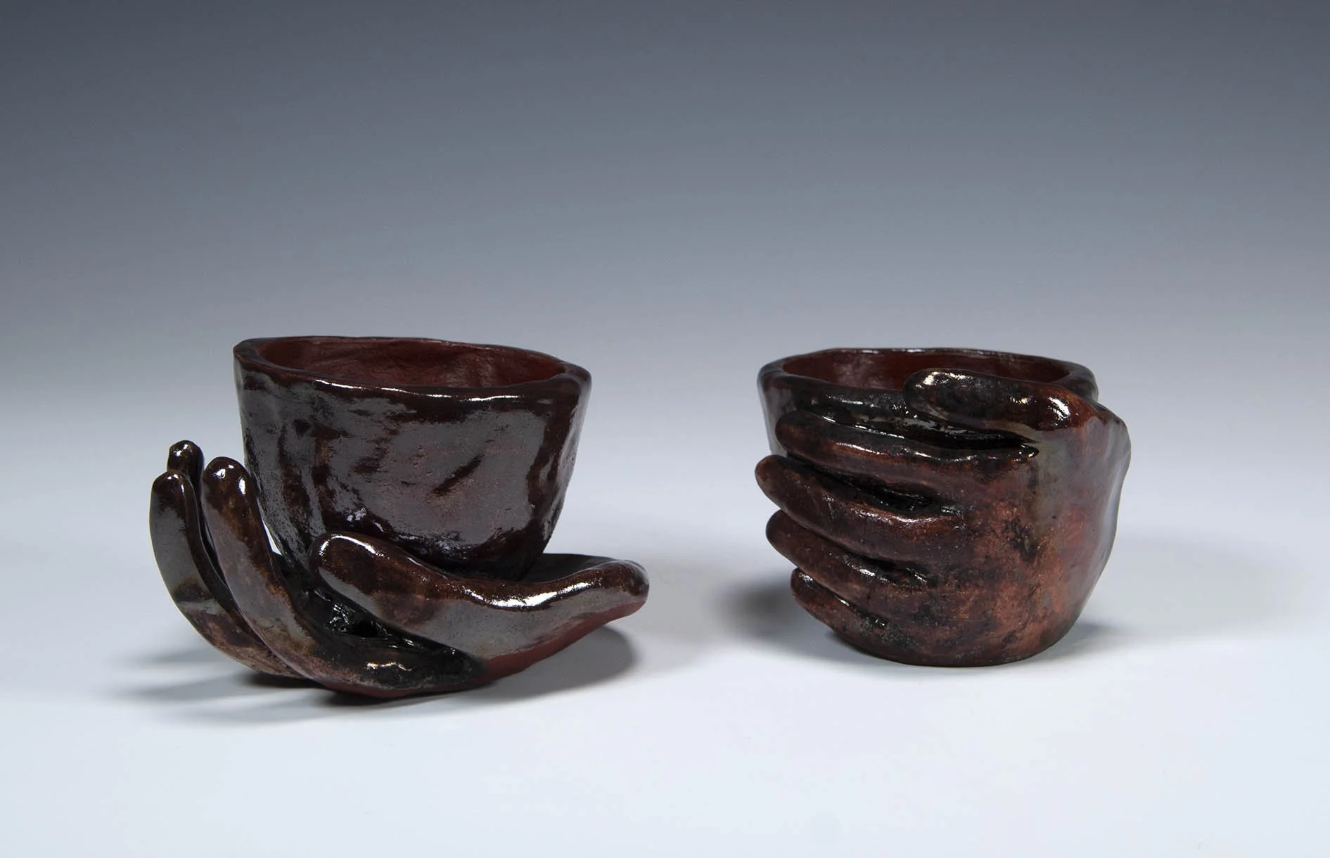 A set of two ceramic cups. Modeled after my own, and my boyfriend’s hands.